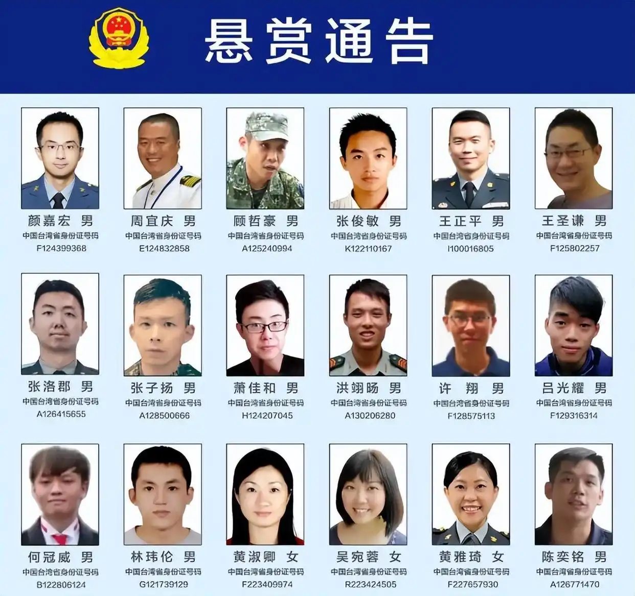 厦门市公安局对18名台湾军方违法核心骨干曝光 时间:2025-10-11 19:02 来源:未知 作者:中国追逃网 点击:次 周宜庆,男,台湾军方“政治作战局心理作战大队”核心骨干。台湾身份证E124832858。2025年10月11日,福建省厦门市公安局发布悬赏通告,征集周宜庆等18名台湾军方“政治作战局心理作战大队”核心骨干违法犯罪线索。 (责任编辑:中国追逃网)